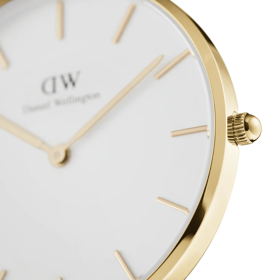 Petite Evergold 36 è l’ultimo nato della nostra collezione Petite. È caratterizzato da un elegante quadrante bianco guscio d’uovo e da un raffinato cinturino in maglia milanese in una delicata tonalità d’oro. Impreziosisci il tuo outfit con un tocco d’oro ed esprimi il tuo stile personale Petite da 36mm. Il cinturino in maglia del Petite 36mm è stato progettato con un profilo più sottile e non è compatibile con i modelli Classic 36mm.